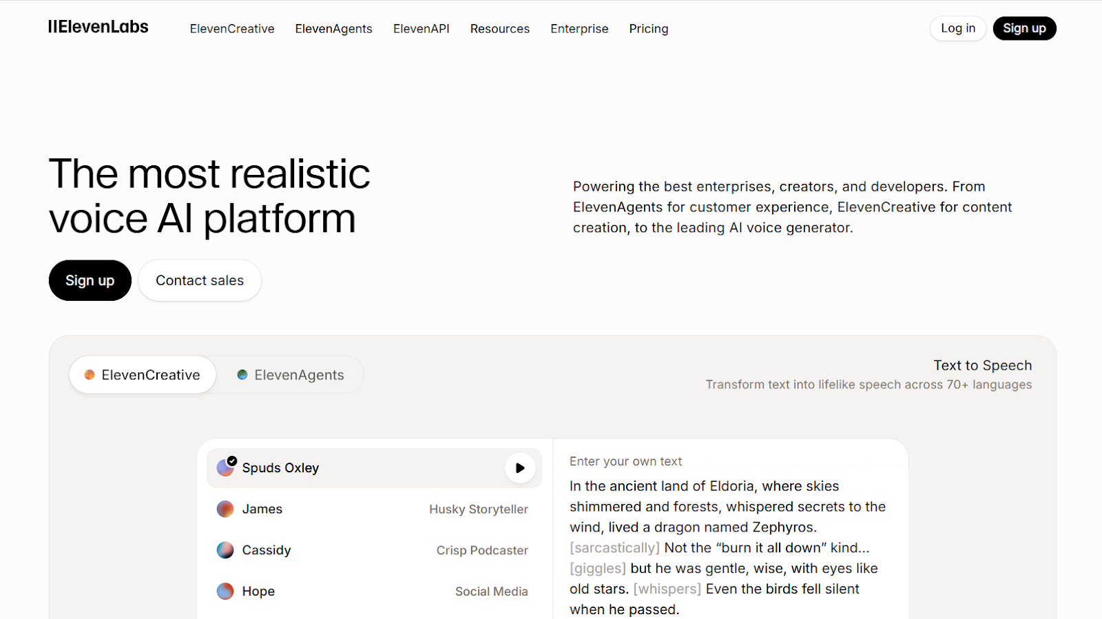 ElevenLabs voice AI generates human-sounding speech from text. You can create a character voice, adjust its tone and emotion, and produce dialogue without a recording session. For multilingual releases, it can take an existing voice and redub it across dozens of languages while keeping the original emotional quality intact.