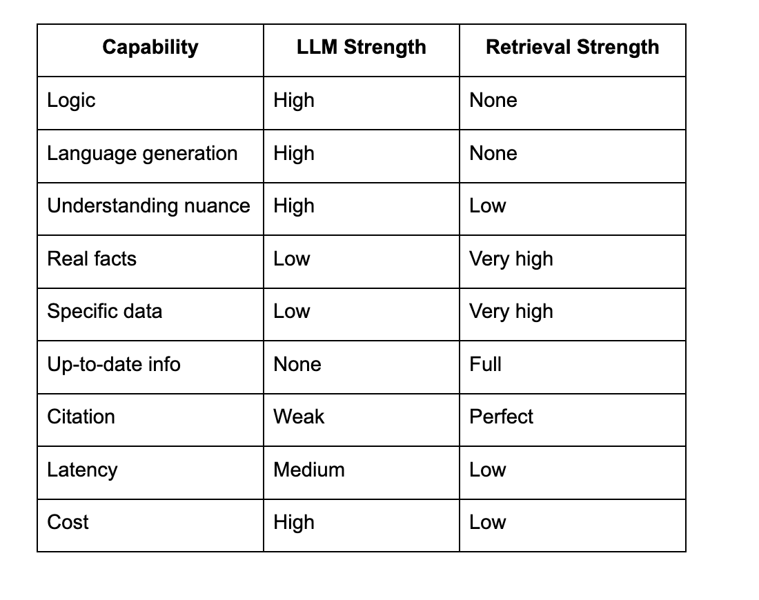 LLM vs Retrieval Strengths
