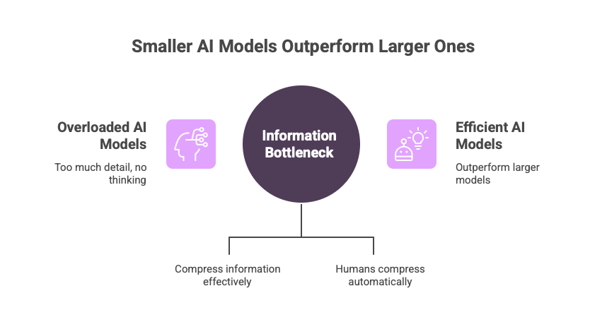 The compression principle explains why smaller, focused implementations often outperform massive general models.