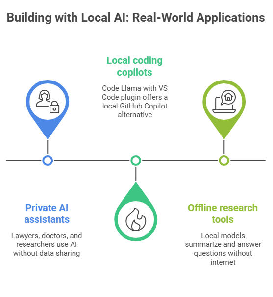 Local coding copilots. Pair Code Llama with a VS Code plugin and you have a local GitHub Copilot alternative. No subscription, no data sharing, faster responses for simpler suggestions.
