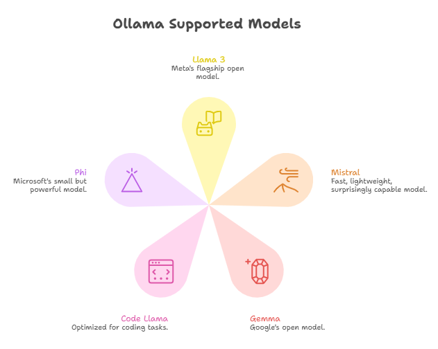 Ollama wraps all of that complexity into a clean CLI. You run one command, it handles the rest.